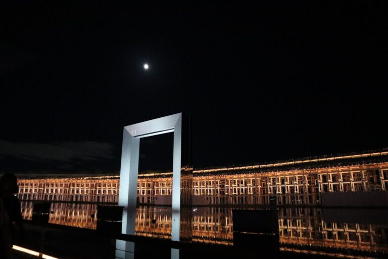 大屋根リングの照明が幻想的です。
