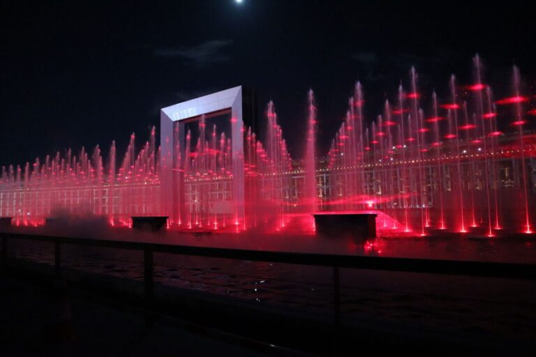 虹のパレードと夜の幻想的な演出