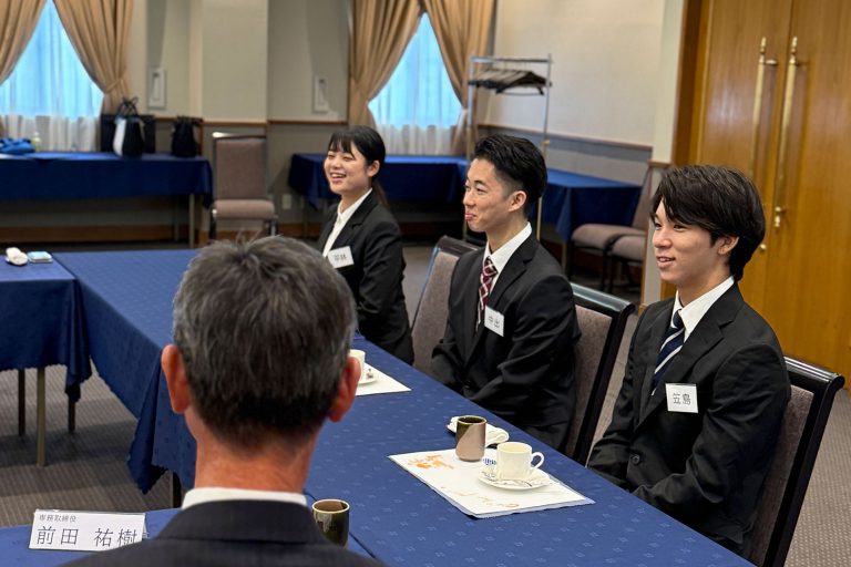 役員との昼食をとりながらの交流タイムでは、仕事の話から学生生活の話まで盛り上がり、あっという間のひとときに
